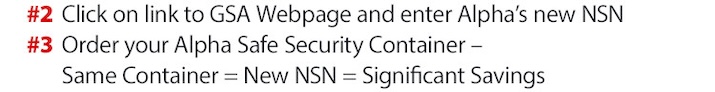 “The term ‘partner’ is often over used in business, but in the case of our organization and our OEM’s, such as Alpha Safe and Vault...it truly applies. Our combined GSA authorized products protect the government’s most sensitive material. This is a responsibility we both take very seriously.”